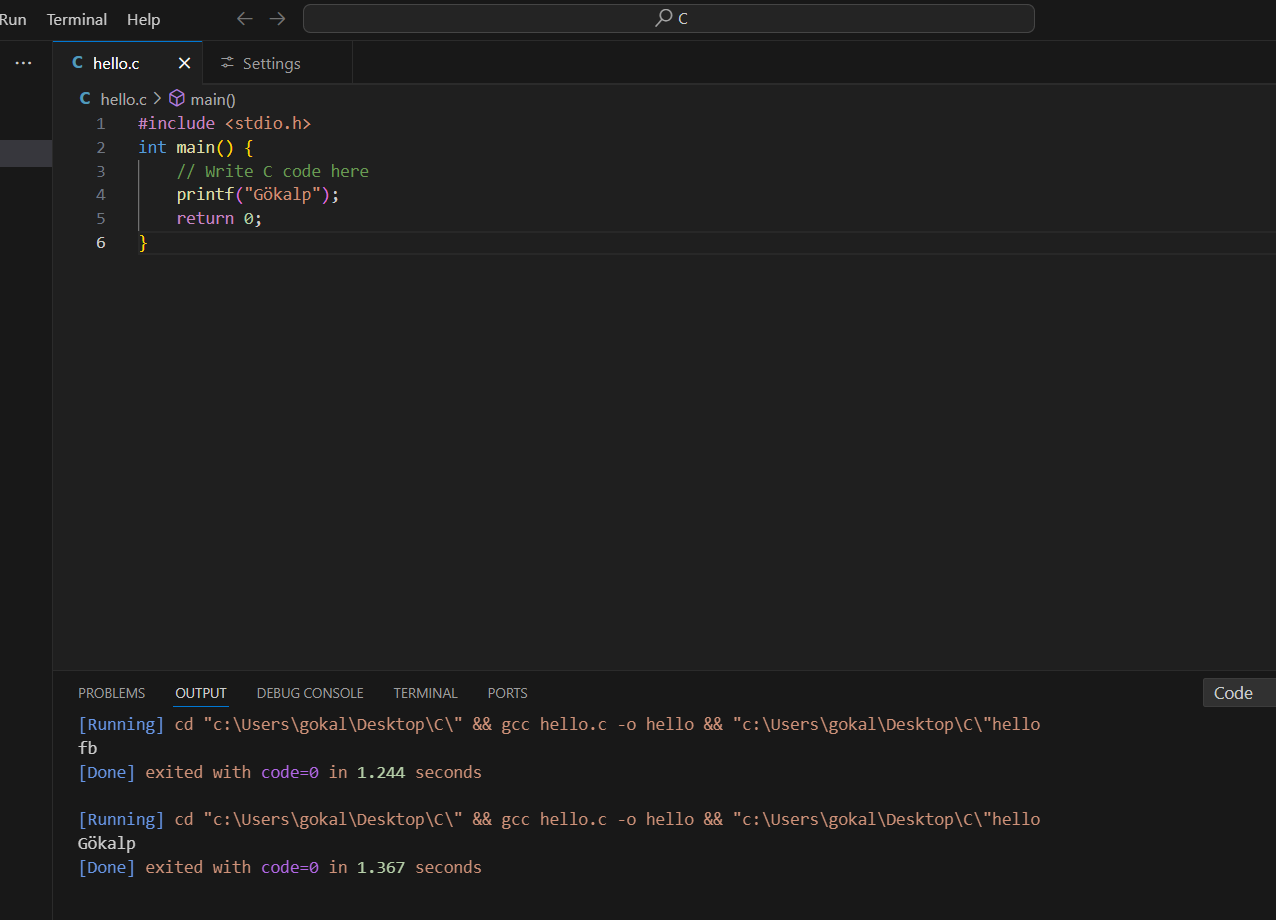 Merhaba yeni C dili öğrenmeye başladım tüm eklentileri ve mingwyi kurdum. C dili çalışıyor mu diye baktığımda: Exited with code = 1 hatası alıyorum. Ne yapmam lazım? Daha önce böyle bir sorunlar karşılaşan varsa yardımcı olabilir mi?