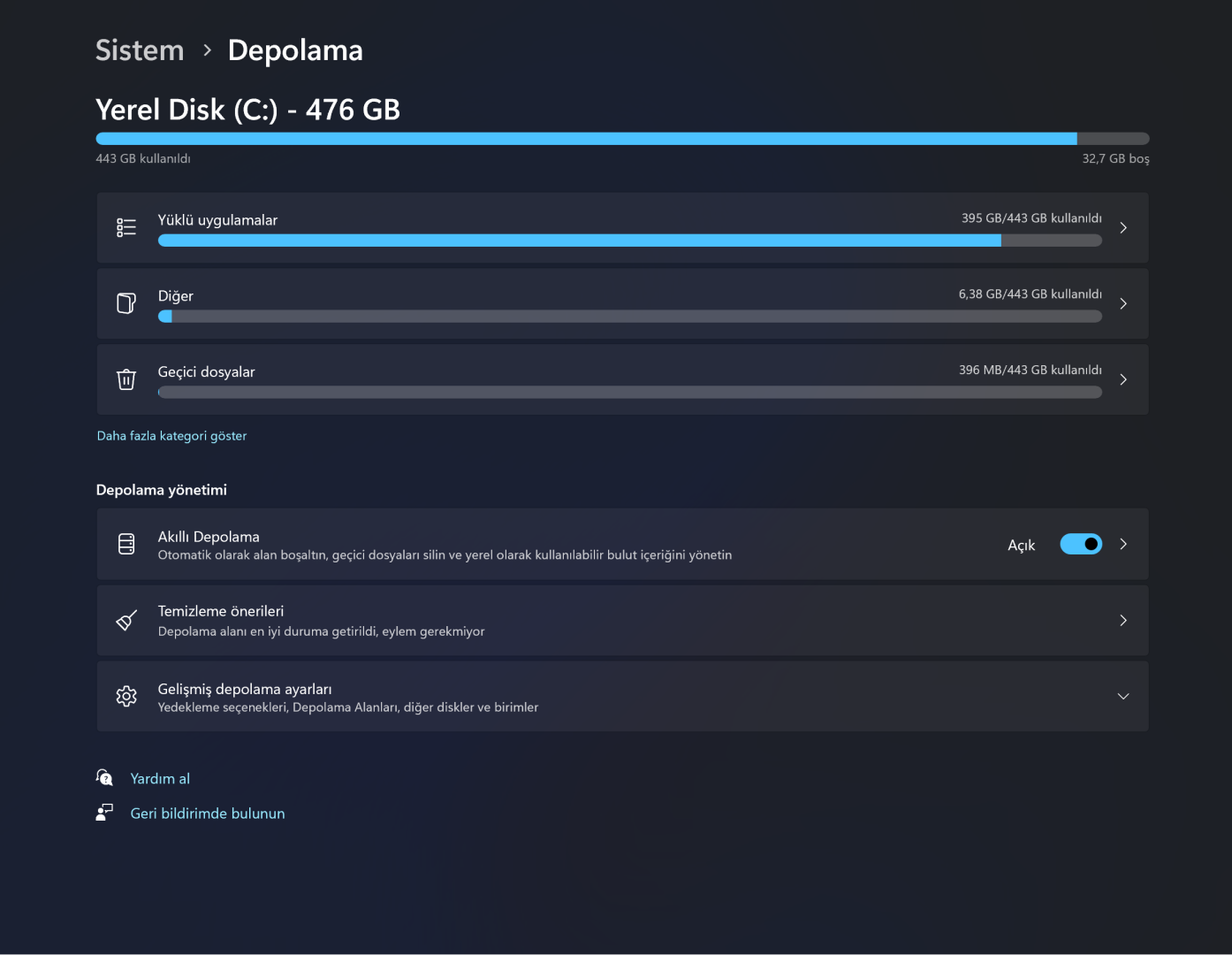 O zaman normal değil hocam Sistem > Depolama kısmında Geçici dosyalarda Güncelleştirme kalıntıları da bayağı bir yer kaplıyor. Virüs olma ihtimali yüksek önerim format atmanız olacaktır.