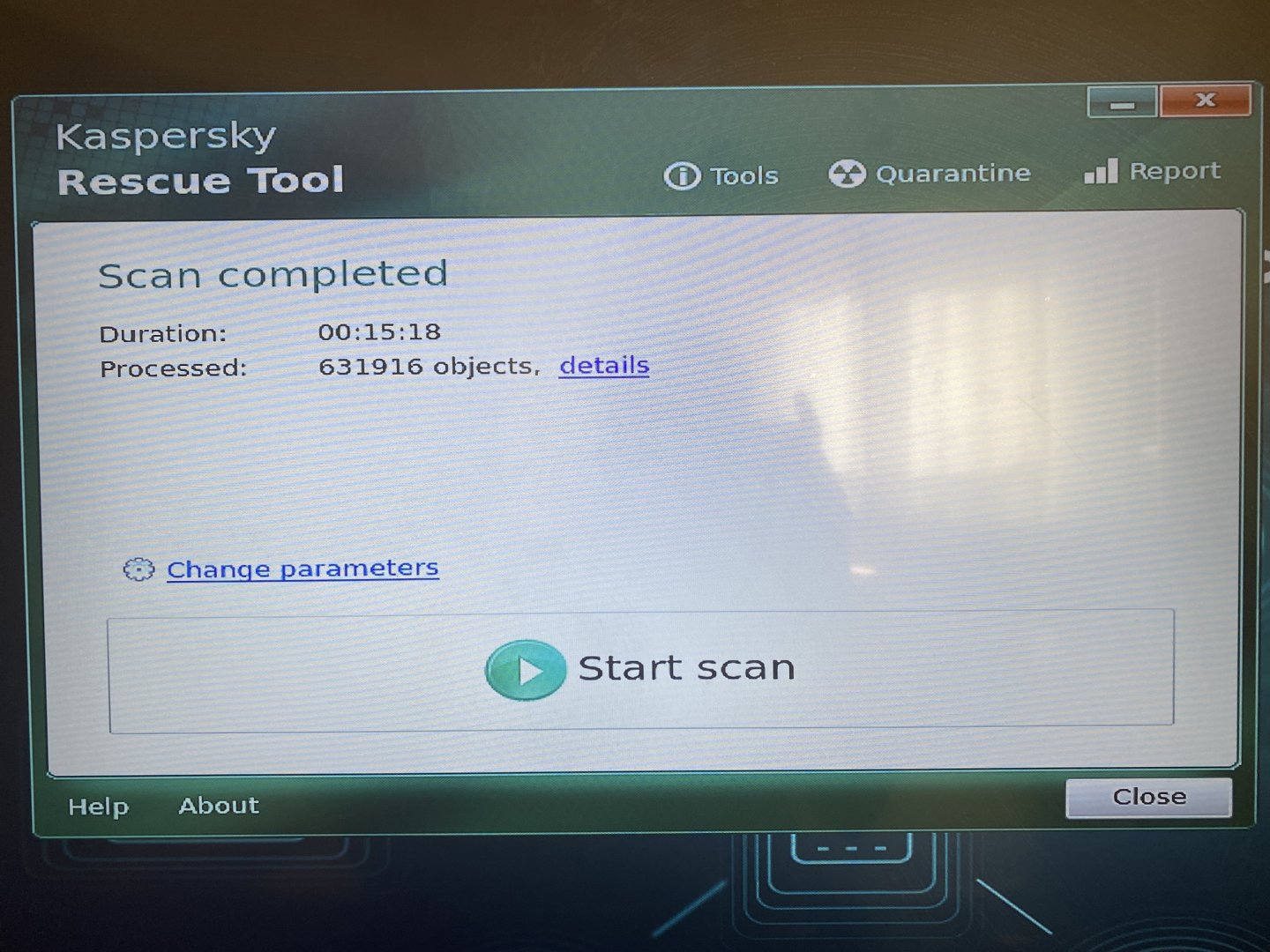 Hocam şimdi geçen USB'ye ISO yazdırmıştık ya Kaspersky için, onunla tekrardan bir tam tarama yaptım ve sonuç böyle: