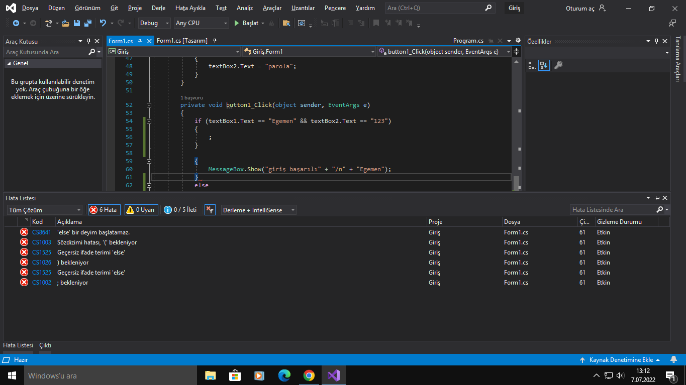 Yanlış bilgi, elseden sonra ikisi de gelmez switch case durumu değil bu.C# konusunda tam bilgim yok ama "else" ifadesinden sonra ";" ve ":" dener misiniz? İkisinden biri sanıyorum olacaktır.