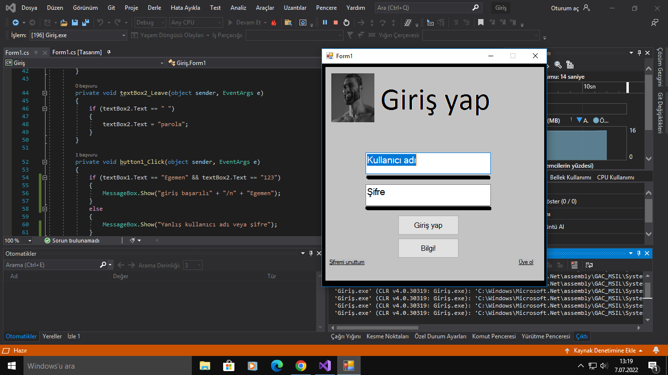 if(textbox1.text == "Egemen" && textbox2.text == "") {