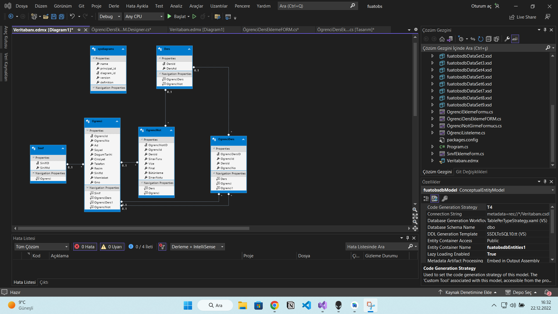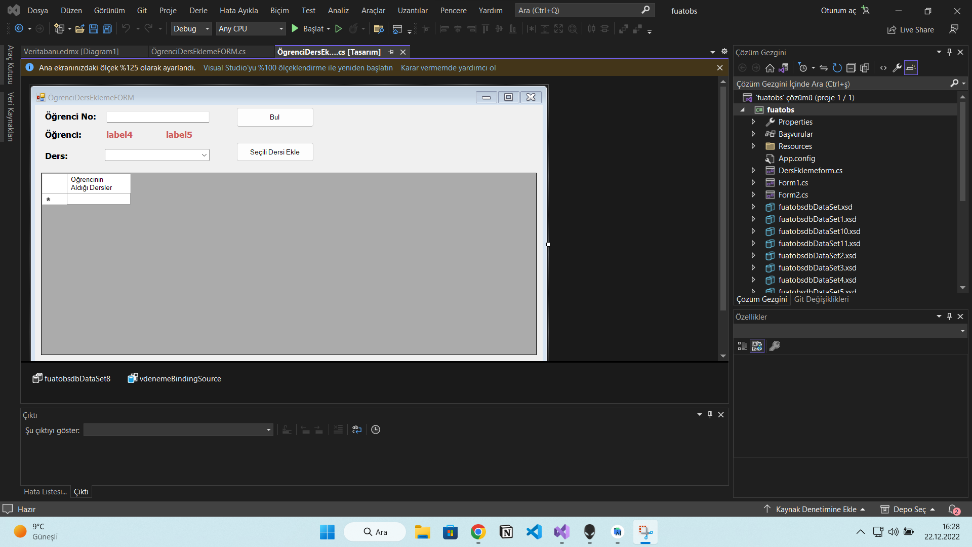 Arkadaşlar C# formda öğrenci bilgi sistemi uygulaması yapmaya çalışıyorum entity freamwork ile yazıyorum. Öğrenciyi bulup ders eklemek istiyorum ve sonra da datagridviewe listelemek çekmek istiyorum sizce bunu nasıl yapabilirim bir türlü beceremedim. Dersler tablosunda dersler ve ıdleri mevcut.