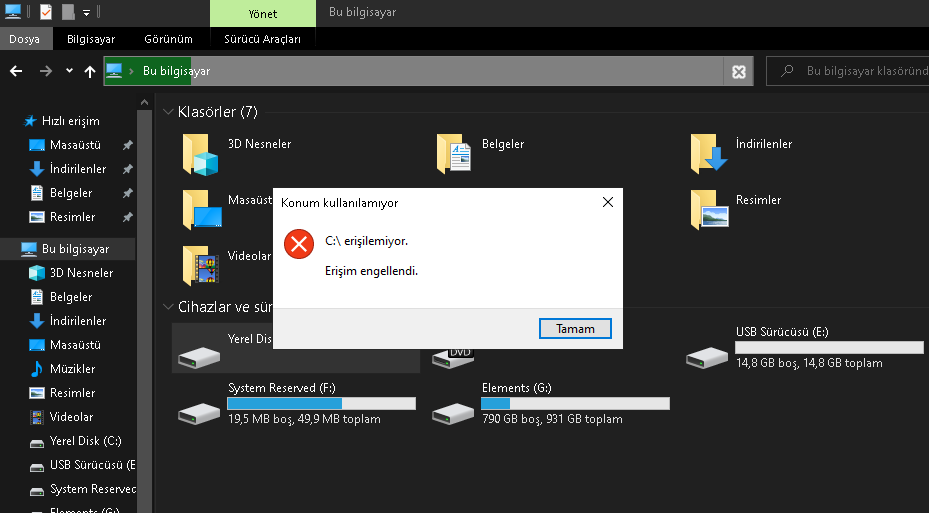 Arkadaşlar merhaba ben sistem ile alakalı bir ayar yapmak istedim ancak C diskini bütün yetkisini kaldırdım şu an hiçbir şekilde C içine giremiyorum.
