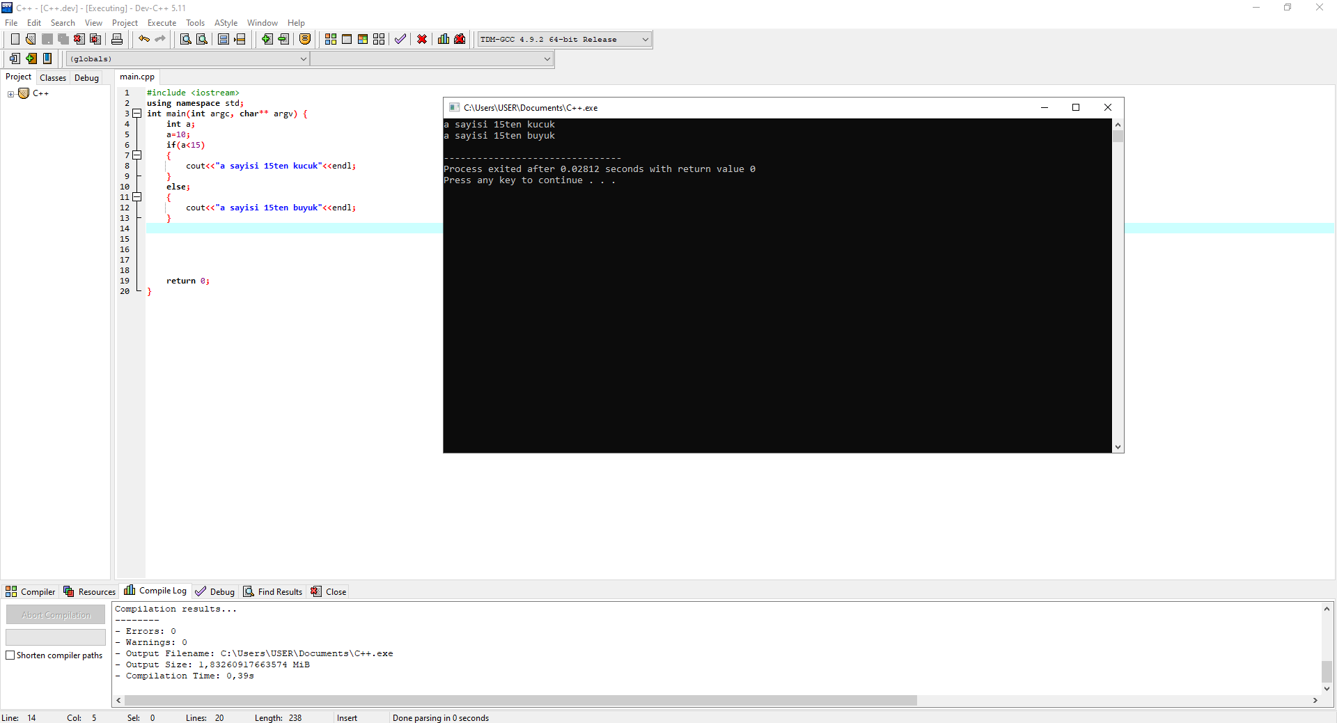 cout << "A Sayisi B'dan buyuk";