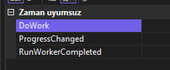 - RunWorkerCompleted: Arka plan işlemi tamamlandığında, iptal edildiğinde veya bir özel durum oluştuğunda gerçekleşir.