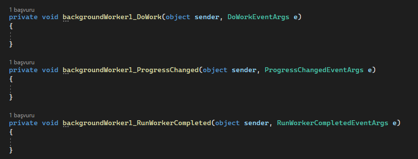 Tüm BackgroundWorker Event kodlarımız;