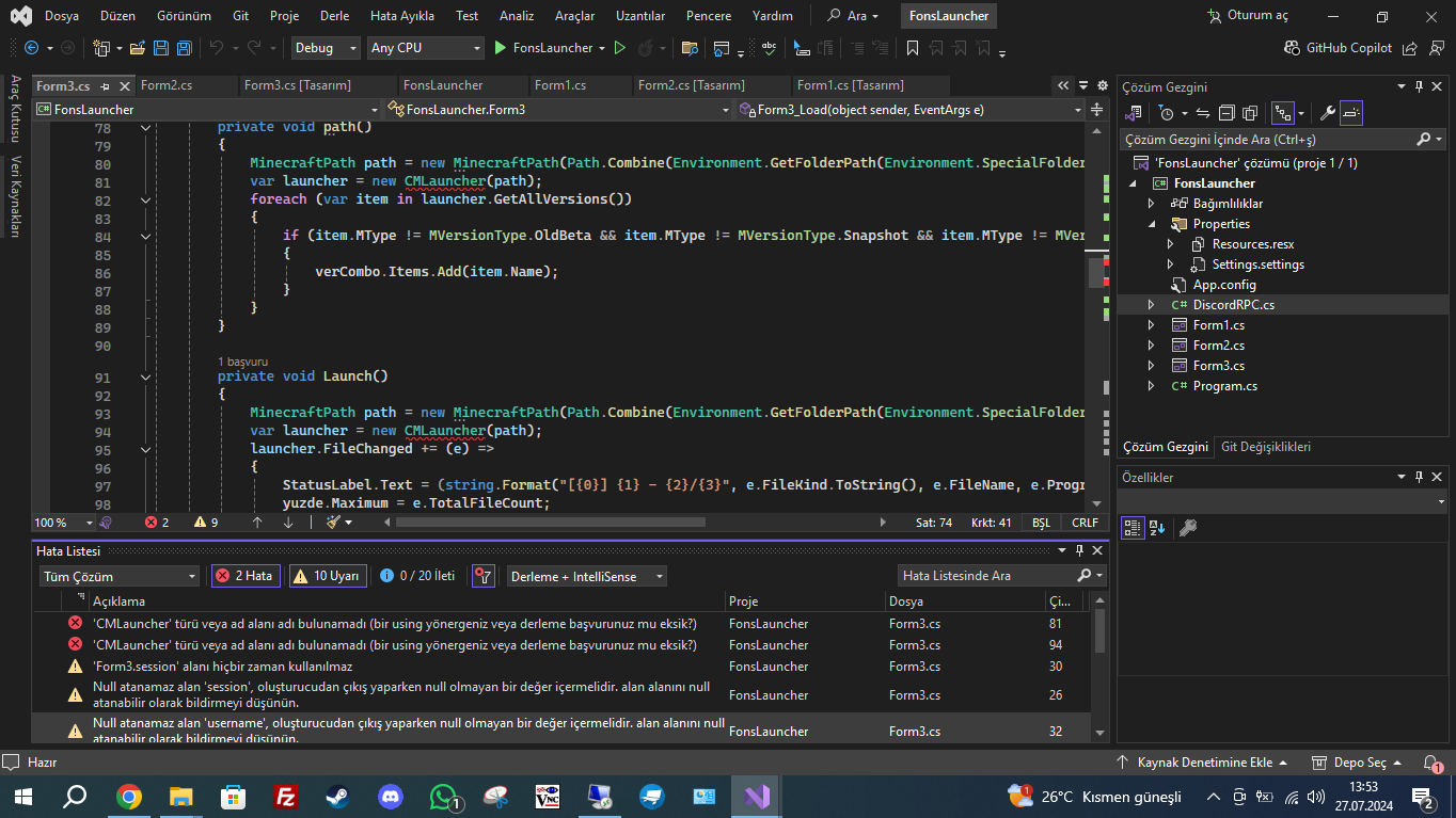 CMLauncher yazan yere formun ismini yazarmısın "FormLauncher" yaz oraya.Merhaba, C# kodum hata veriyor ancak ben çözemedim. Düzeltmek için ne yapabilirim? Yardımlarınız için şimdiden teşekkürler.