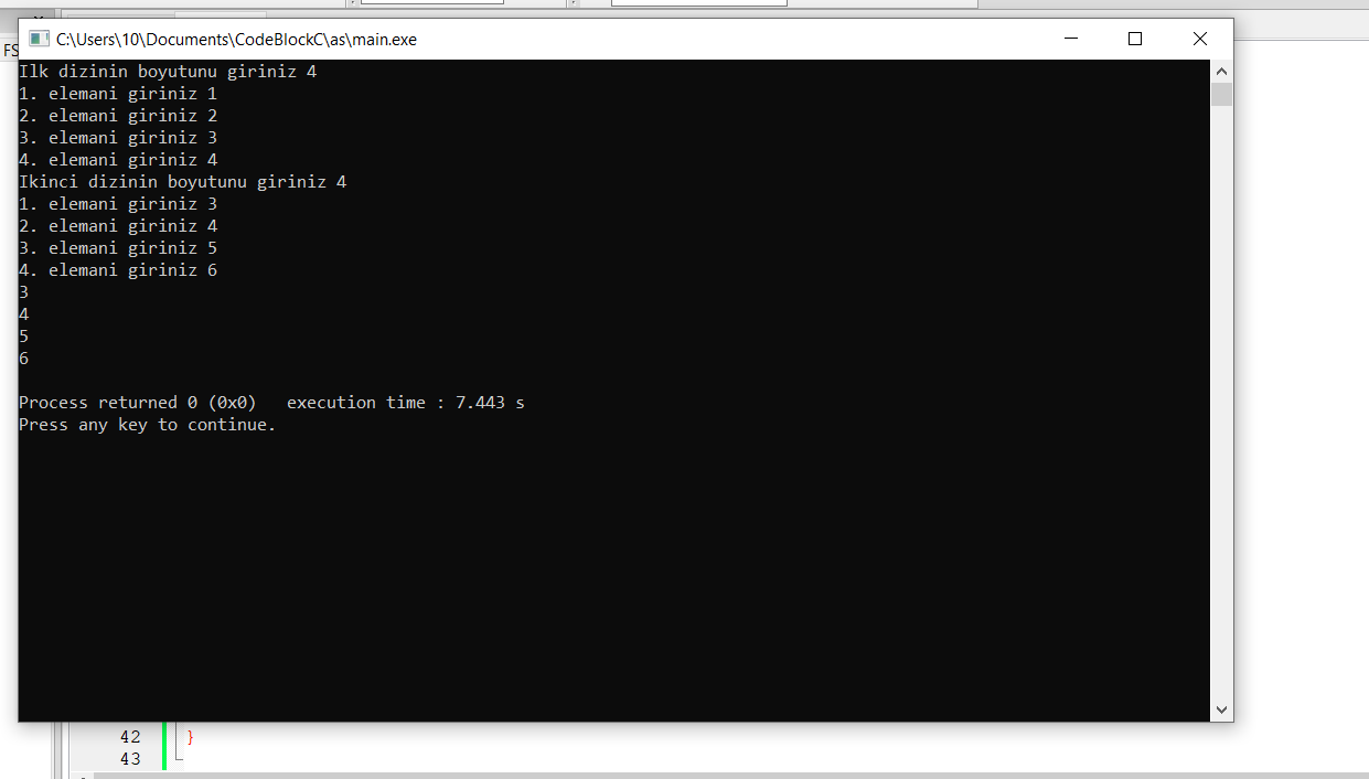 B: printf("Ikinci dizinin boyutunu giriniz ");