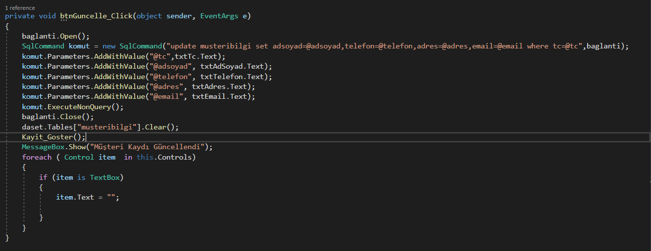 C# SQL server veri tabanı Update sorunu