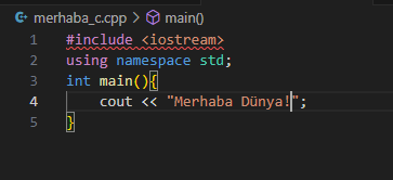 C++ öğreniyorum ve bir kod yazarken bu hatayı alıyorum çözümü nedir? Visual Studio Code'da yazıyorum.