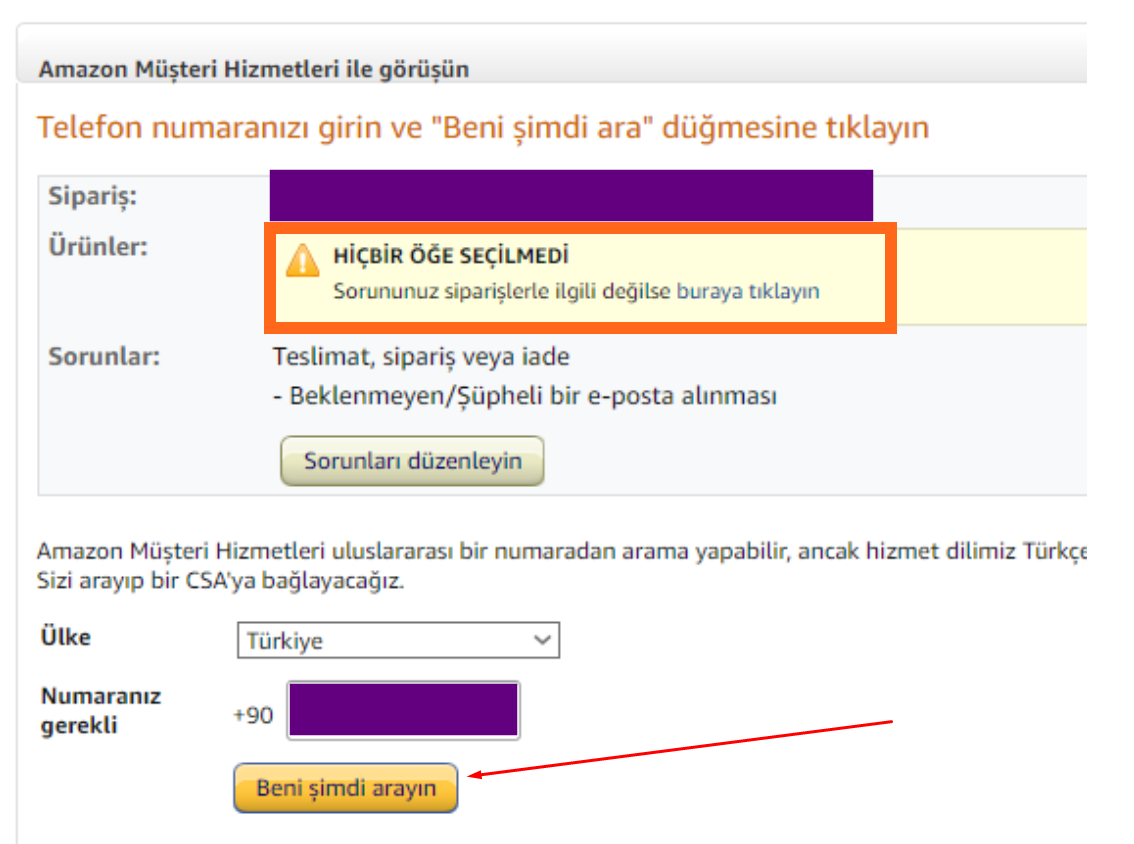 Gece saat 1.00 civarında Amazon'dan gelen mail bildirimleriyle uyandım. Gelen maillerin üçünde hesabımdan yapılan alışverişin onaylandığı, son bildirimdeyse yapılan şüpheli alışveriş sebebiyle hesabımın bloke edildiği yazıyordu. Ancak bu alışverişlerin hiçbirisini ben yapmadım. Hesabımı geri almak için gereken belgeleri yolladıktan sonra geçici şifreyle giriş yapmamı istediler. Sonraki adımda da sonu 68 ile biten numaranın tamamını yazmamı istedi ancak o numara bana ait değil. Eğer problem yaşıyorsanız 00800142030233 numarasını arayın yazdı ama bu numara aranmıyor. Amazon'la nasıl iletişime geçebilirim yardımcı olabilir misiniz?