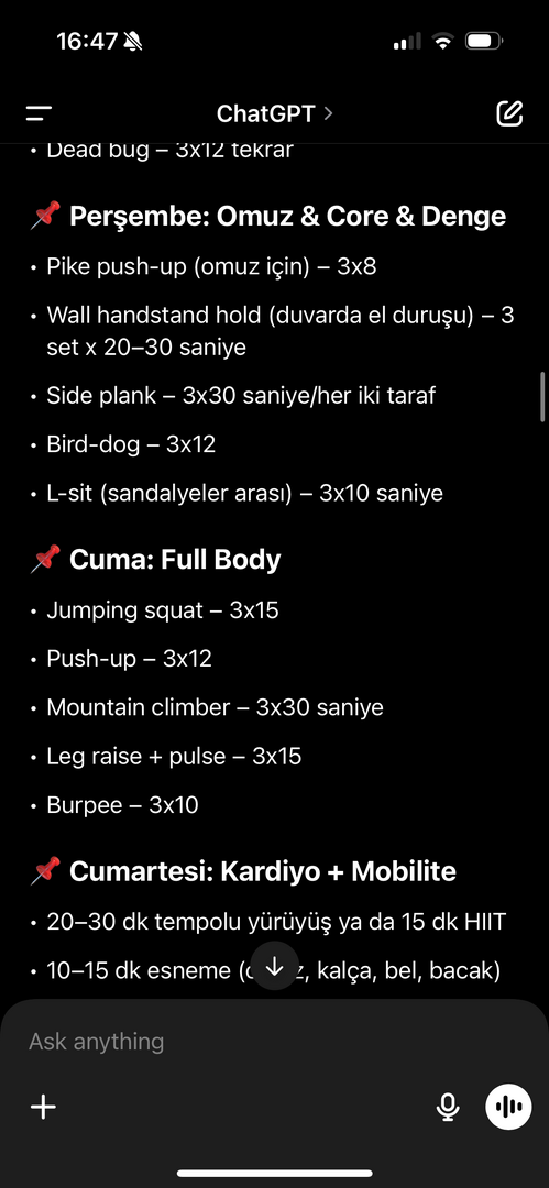 Sınav, mekik, squad gibi en temel hareketlerde ustalaşarak artık varyasyonlara geçiyorsun, ardından akrobatik hareketler yaparak gelişmeye çalışıyorsun. Akrobatik hareketlerde bir çok kas grubu aynı anda çalışıyor. Çok iyi vücut da yapılır.