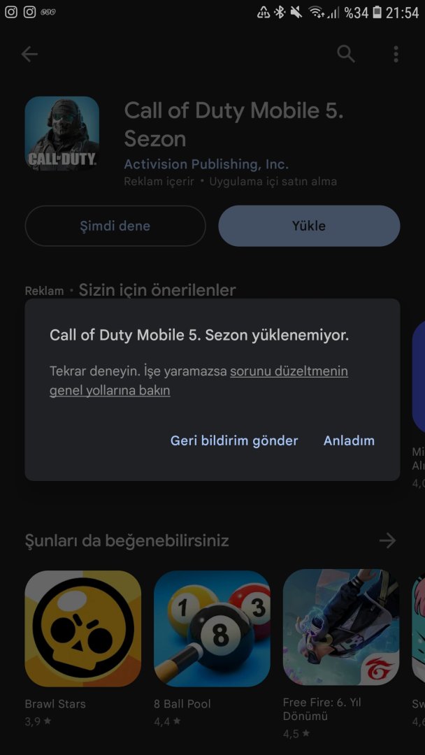 6 GB boş alanı var, buna rağmen oyunu yüklemeye çalıştığımda %100 olup yükleniyor diyor ama sonra yüklenmedi diyor. Yaptıklarım;