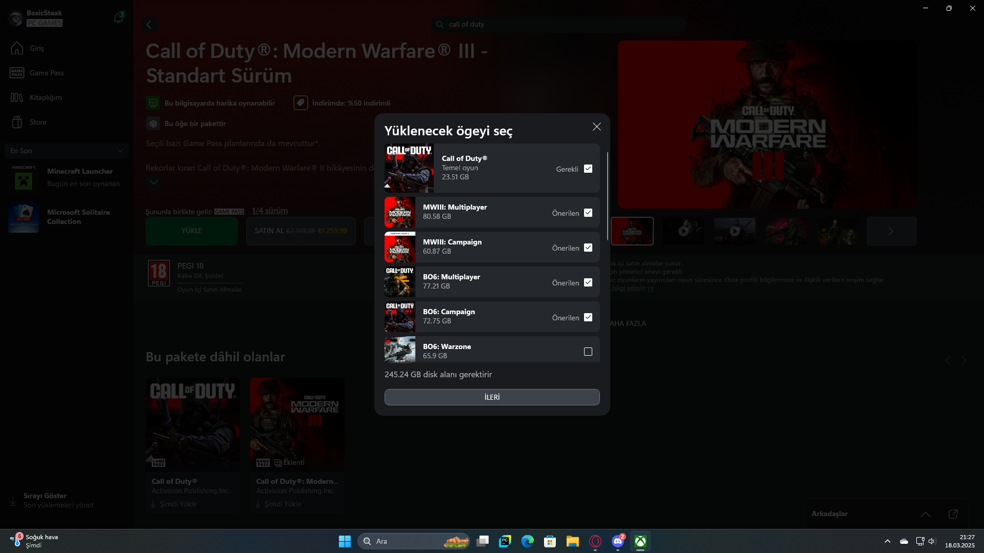 Xbox Call of Duty MW3 indirirken hangi seçenekler seçilmeli?