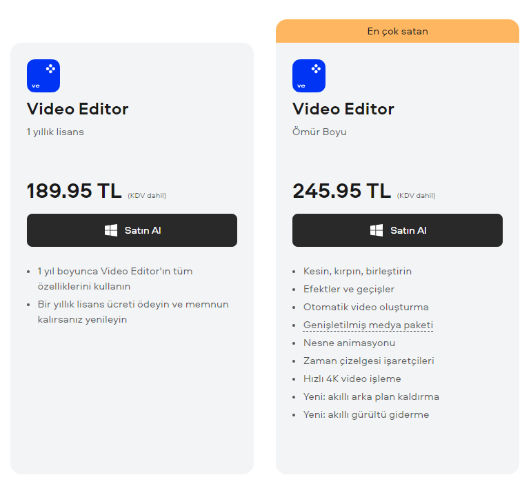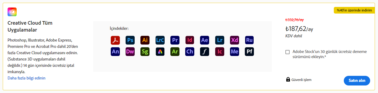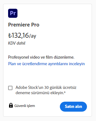 Fiyatlar bu şekilde. Adobe tarafında sadece Premiere Pro'ya ayda 130TL vermektense, Creative Cloud alarak tüm Adobe uygulamalarına 190TL vermek daha mantıklı.