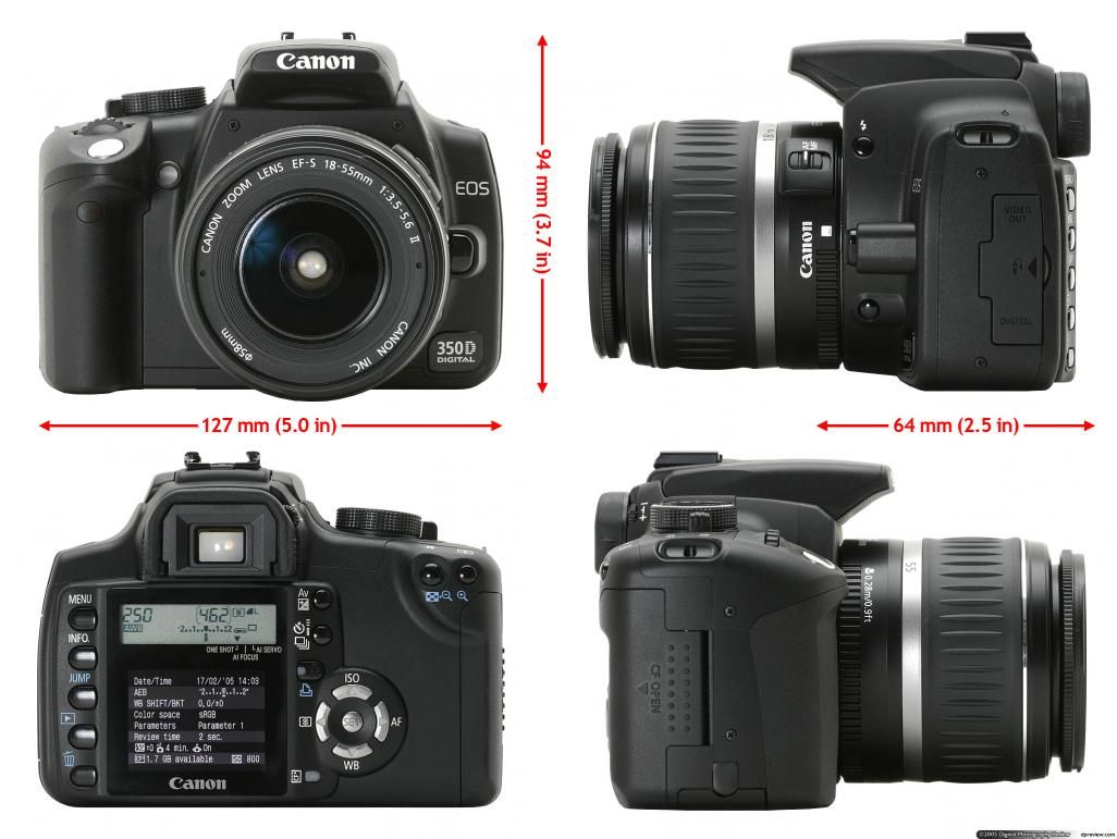 Başlangıç seviyesi bir fotoğraf makinesi olmasına rağmen profesyonel fotoğraf ustalarının inatla kullandığı bir fotoğraf makinesi, Canon 350D. Canon diğer fotoğraf makinelerine kıyasla daha sade ve renksiz bir fotoğraf sunar ancak fotoğraf işleme aralığı da bu oranda daha yüksektir. Bu nedenle dijital düzenlemeyi (Photoshop) sevenler için Canon 350D hem ucuz hem de kullanışlı bir cihaz.