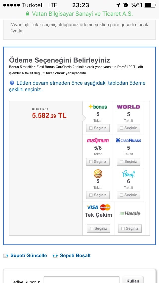 Sanırım bu sistem baktığım laptoplardan daha iyi oldu gibi :)