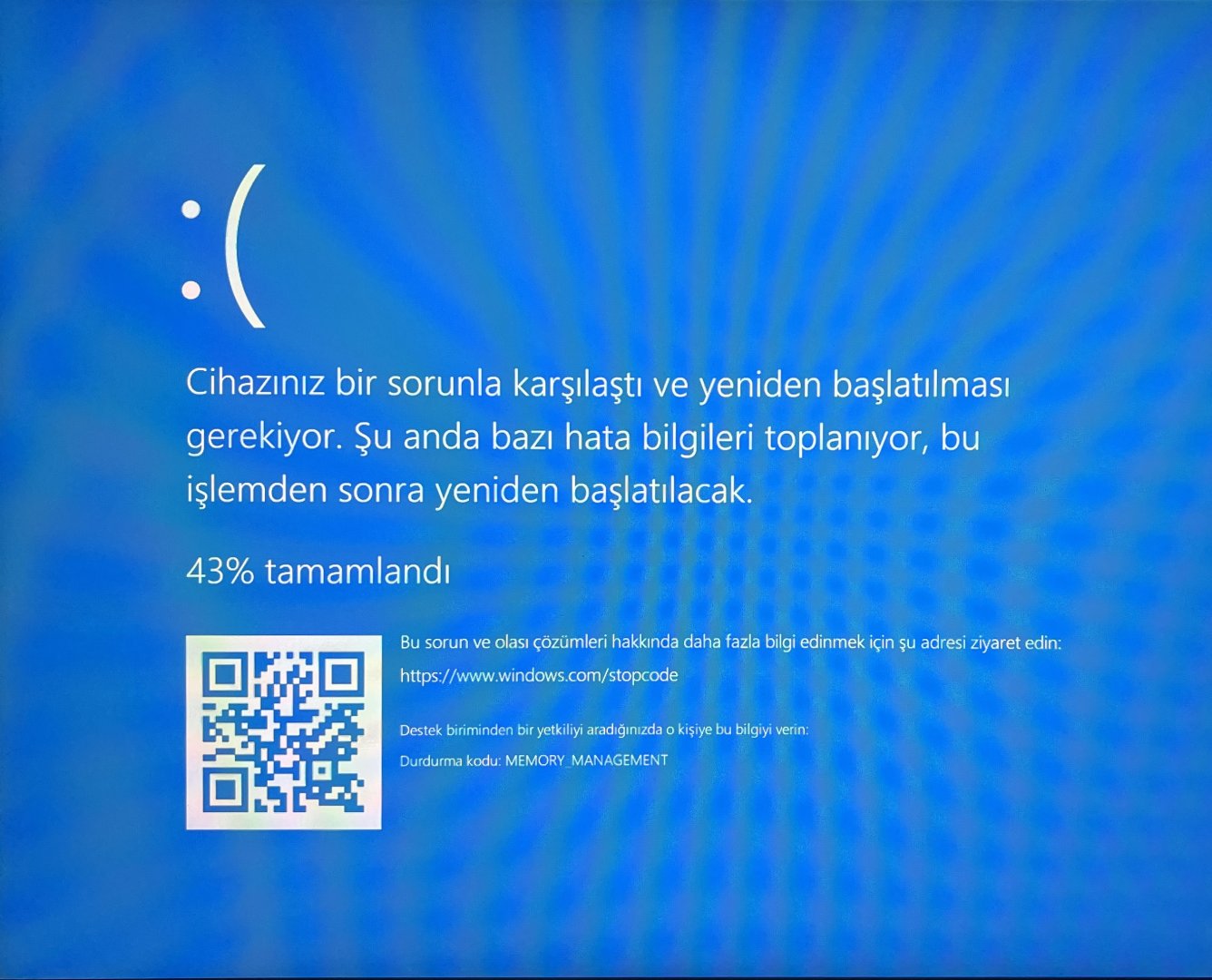 Arkadaşlar merhaba, Casper Excalibur G870 laptop aldım i7 12. nesil işlemci RTX 4060 ekran kartı 64 GB RAM var bilgisayarda Windows 10 yükledim sürücü güncelleştirmelerini tam yapmadığım zamanda 3-4 defa mavi ekran hatası aldım daha sonra Casper sitesinden sürücüleri indirdim hepsini kurdum 5-6 gün mavi ekran hatası almadım dün kullanırken tekrar mavi ekran hatası aldım. Mavi ekran hatasını aldığım zaman bilgisayar çok fazla güç de harcamıyordu YouTube'dan video izlerken karşıma çıktı.