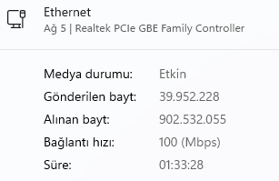 Anakart gigabit porta sahip, modem ise 100 Mbps porta sahip. Acaba modemden dolayı mı 100 gözüküyor?