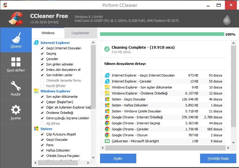 CCleaner Google Chrome'u temizlemiyor