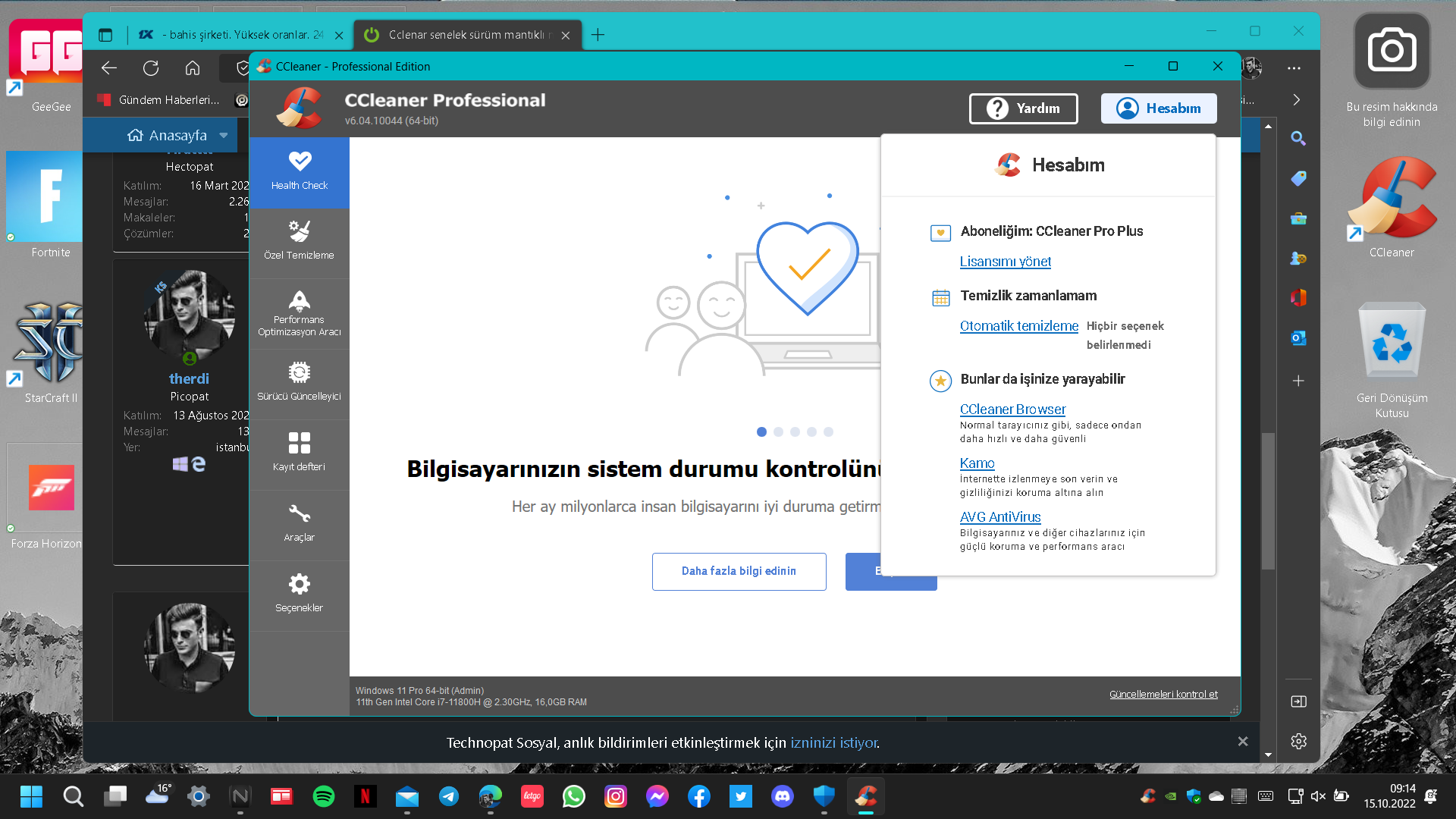 Cclenar 1 yıllık olan Professional paketini satın aldım gayet de kullanışlı uygulamaları net durduruyor sürücü güncelleştirmelerimi yapıyor bilgisayarımı hızlandırıyor.