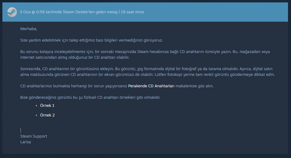 Desteğe yazdım ve hesabıma bağlı CD anahtarını istiyorlar ama bunu bilmiyorum, geri dönüş nasıl yapabilirim?