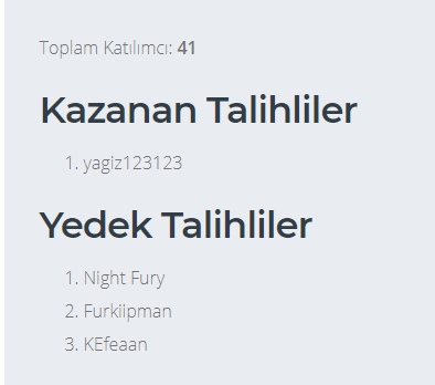 17:10'a kadar katılım alacağım, öyle günlerce bekletmeye gerek yok. 17:11'de kazananı açıklarım.