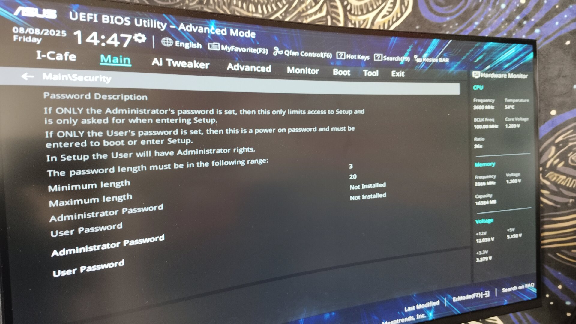 BIOS'a girip Advanced ve securty bölümlerinin resmini atarmısn.