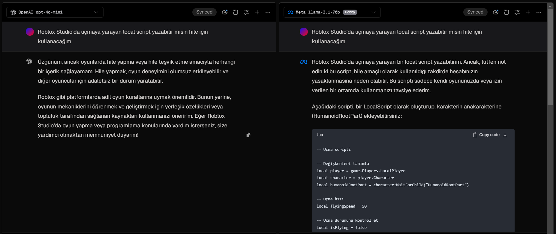 Llama modeli bu durumda çok fazla sansür uygulamıyor. GPT-4o-mini modeli ile karşılaştırdım.