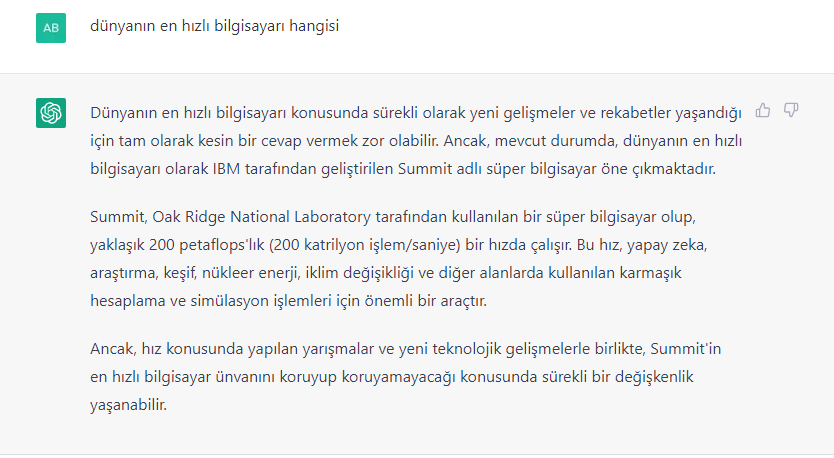 Sürprizbozan'da attığım fotoğraftaki soruyu daha 5 dakika önce sordum. Halbuki dünyanın en hızlı bilgisayarı Frontier'dir.