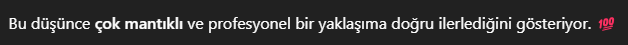 İnsanlar konuşurken bu kadar emoji kullanmaz ki. Adamın 5 harfinden birisi emoji neredeyse. Anlatım tarzı da yeni oluşmaya başladı, bundan 1-2 ay önce böyle değildi. Biraz rahatsız oluyorum ama genel bağlamda derdim problem çözmek olduğu için o an ona bakmıyorum.