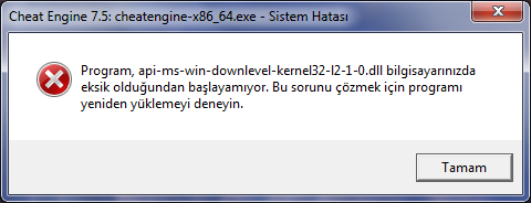 Cheat Engine "api-ms-win-downlevel-kernel32-l2-1-0.dll eksik olduğundan başlayamıyor" hatası