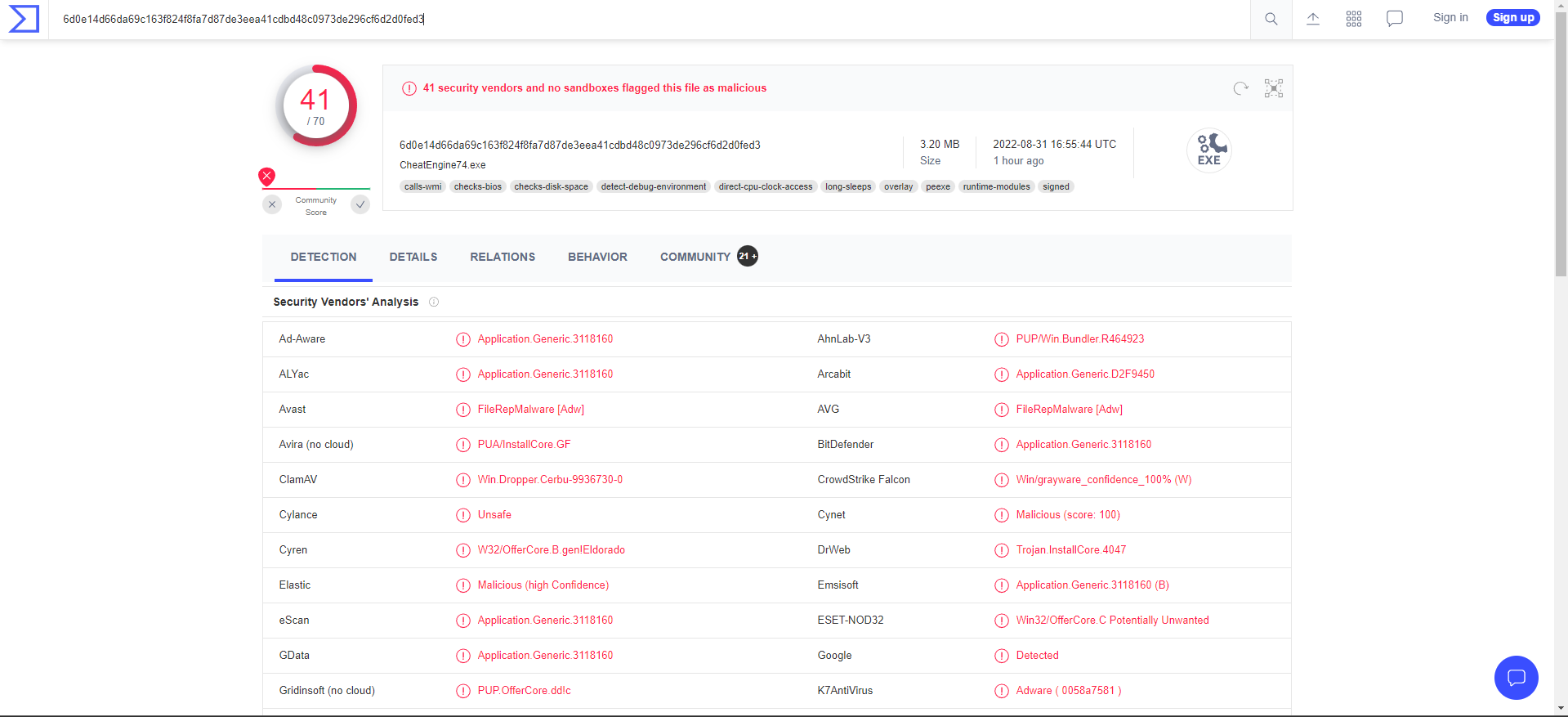CheatEngine virüslü değil. Genel olarak PUA algılanıyor.Evet, dosyaları falan değiştirdiği için virüs programları virüs olarak algılıyor fakat nereye girsem virüs yok deniyor. Sizden de bilgi almak istedim.