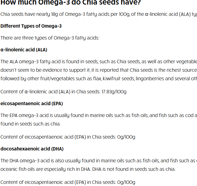 ALA formu hocam o. EPA ve DHA az miktar da olsa bulunuyor sanıyordum ben hatta direkt hiç bulunmuyormuş.İnternette 2 kaşık Omega 3 tamamen karşılıyor yazıyor.