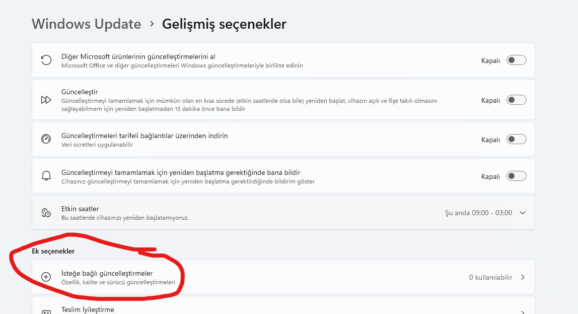 1- Windows Update (Ek güncelleştirmelerle beraber)