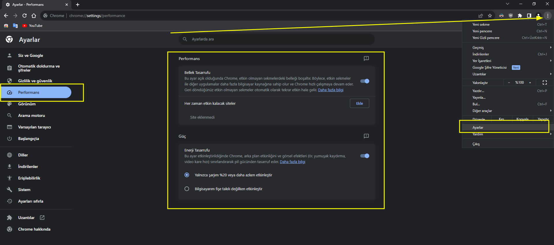 Verimlilik modu, uzun süre kullanmadığın sekmelerin kendi kaynak tüketimini azaltmasını sağlıyor. Bu ayarı kapatmanı önermem.