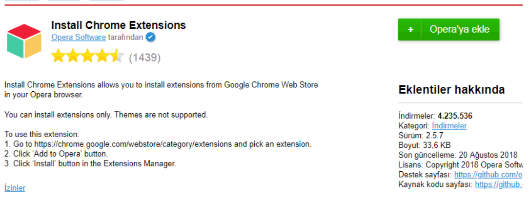 Merhaba, bugün bilgisayarıma format attım ve temiz kurulum yaptım. Opera kullanıcısıyım, önceden Opera için bir eklenti vardı adı "install Chrome extensions"tu Chrome eklentilerini Opera'da kullanmamızı sağlıyordu fakat sanırım eklenti kısmından silinmiş. Bu eklenti yerine kullanabileceğim bir eklenti var mı?