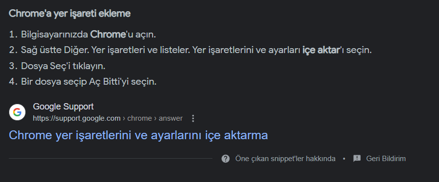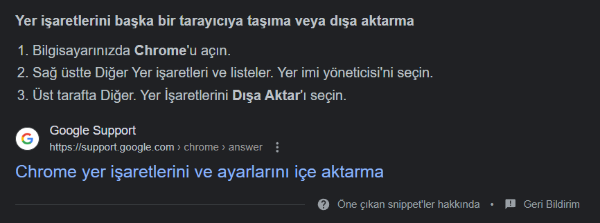 Merhaba. Soruda da belirttiğim üzere bilgisayarımdaki Chrome'da sık kullanılanlara eklediğim sekmeleri yeni bilgisayarıma aktarmak istiyorum. Nasıl olacağını az buçuk bazı yerlerden gördüm ancak ben klasör klasör eski bilgisayarımda olduğu şekliyle aktarmak istiyorum. Böyle bir yol var mı? Yardımcı olursanız sevinirim.