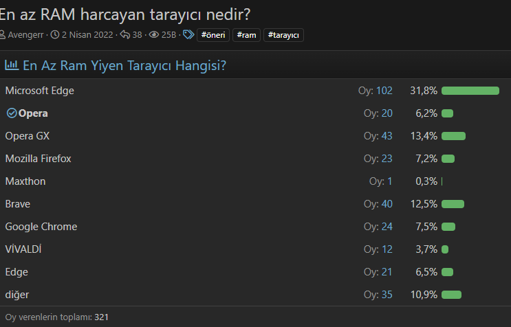 Arkadaşlar Microsoft Edge'de elendi denedim Chrome göre daha çok RAM alıyor enazılan CPU'yu o kadar kullanmıyor.
