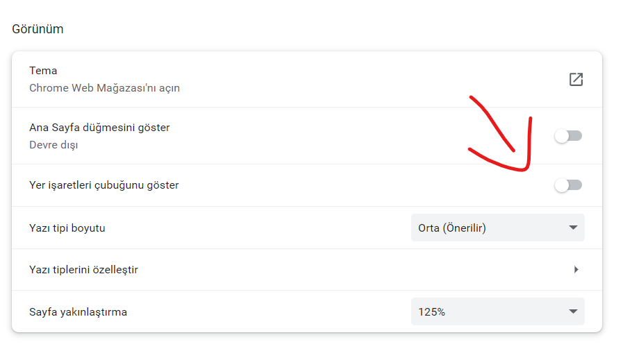 Chrome'da yer imleri çubuğunun sadece yeni sekmede gözükmesi nasıl sağlanır?