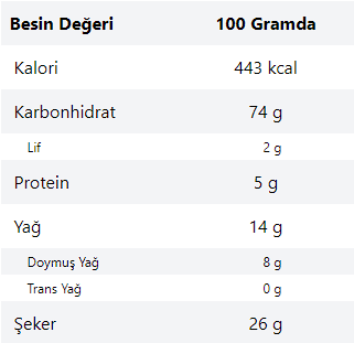 Değerler resimdeki gibiymiş sanırım. Kilo almama yardımcı olur mu? Bol kaloriye ihtiyacım var kilo alabilmek için. Biraz fazla yağlı gibi geldi bana ama. 100 gramında 26 gram şeker var bir de, bu da yüksek. Eğer mantıksız diyorsanız sabahları yiyebileceğim bu tarz başka önerilerinize açığım.