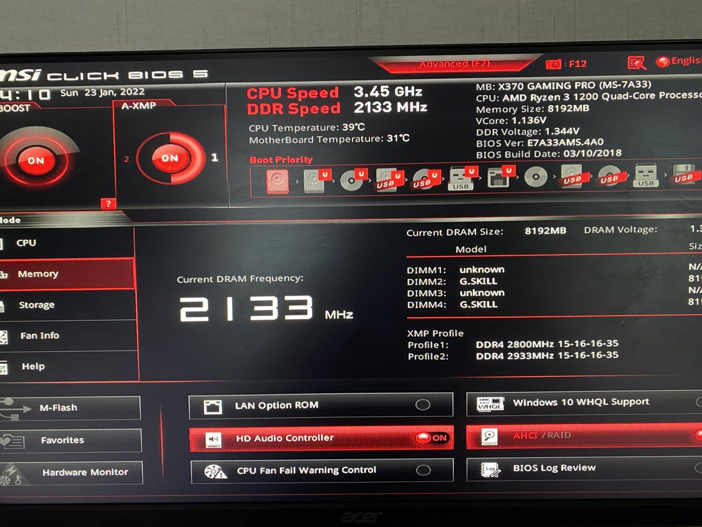 Merhaba elimde 8+8 GB olmak üzere 16 GB RAM bulunmakta. Sadece birini kullanırken diğerini takmak istedim. Diğerini taktım denedim ekrana görüntü gelmedi. Bilgisayar açılırken VRAM ve CPU ışığı yandı, bilgisayar 1 dakika çalışıp kendi kendine reset atmaya başladı. Slotları değiştirince çalıştı fakat ekrana ekteki görüntü geldi. Görüntüdeki gibi taktığımda ise yeniden VRAM ve CPU ışığının yandığını, bilgisayarımın dakikada bir ekrana görüntü gelmeksizin sürekli yeniden başladığını gözlemledim. Çalıştığı şekilde takıp BIOS'tan 2933 MHZ'e ikisini de ayarladım. Zannediyorum ki RAM'lerimden birisinin CL seviyesi farklı. Sizce bir sıkıntı olur mu? Randumansızlık, performans eksikliği, olağandan bir tık daha az performans alma gibi durumum olur mu? Bu RAM uyumsuzluğundan dolayı oyunlarda ani FPS kaybı yaşar mıyım? Teşekkür ederim.