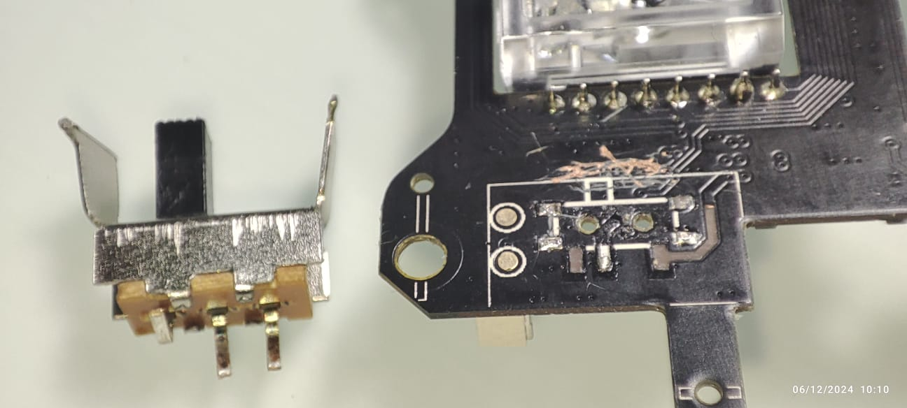 PCB'ye epey zarar vermişsiniz. Yollar kısa devre olmuş olabilir. Onları kontrol edin öncelikle. Eğer sorun yoksa uygun kılıfta buton takılabilir gözüküyor, pedlerde bir sıkıntı gözükmüyor.