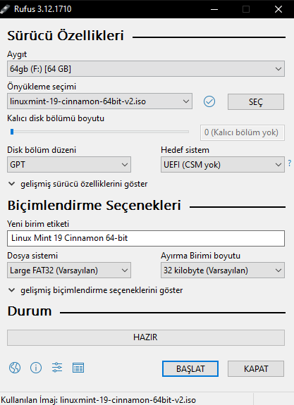 balenaEtcher ile yazdırdığım Linux Mint USB'yi eski N3350 UEFI laptopuma taktığımda hiçbir şekilde ne BIOS'ta ne de bilgisayar klasöründe, Windows 10 açıkken görmüyor. Windows 7'de de aynı problem var ama Win 8 ya da 10 kurmaya çalışınca gayet de güzel kuruluyor. Secure Boot kapalı. Tüm USB girişlerini denedim. USB modeli "DT50 64 GB". Kurulum yaparken bu videoyu referans aldım.