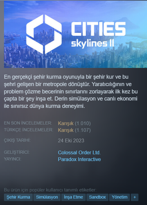 Merhaba. Uzun süreli oynayacağım oyun arıyorum. Cities Skylines2 nasıl, yani uzun süre sıkılmadan oynanır mı? Cities Skylines 2 ve FC26 arasında kaldım. Sizce hangisini almalıyım?