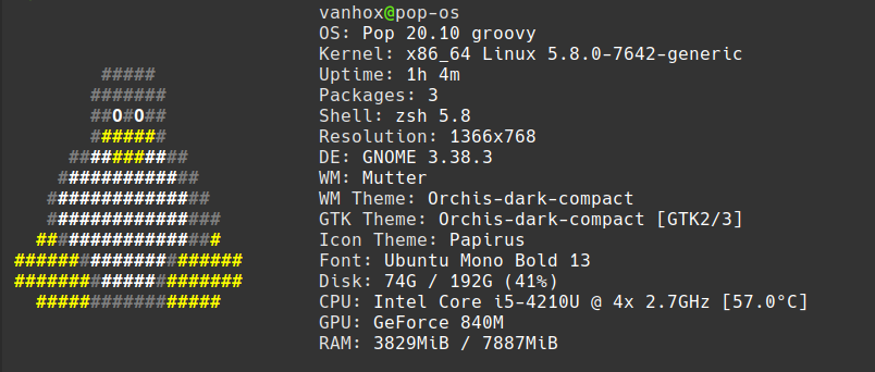 neofetch , diğer dağıtımlara kurulum için: dylanaraps/neofetchKullanım