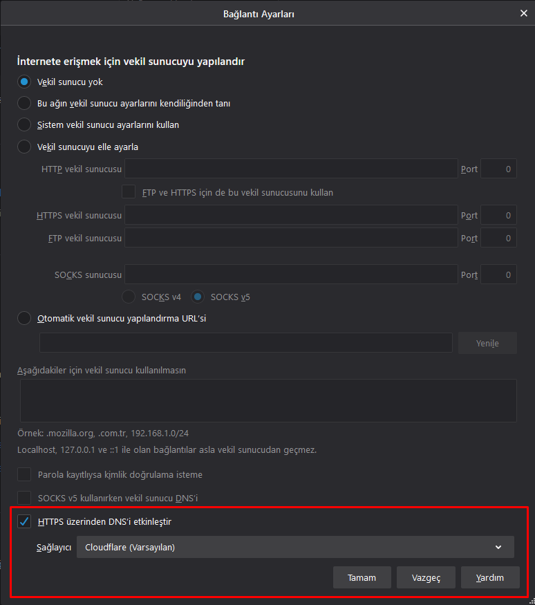 Bu arada DNS değişikliği için, bazı tarayıcıların ayarı bulunuyor. Sorunlar çözülünce, kullanmak isteyenler varsa öneririm. Ağ bağdaştırıcısından kullanmak yerine, böyle kullanmak daha avantajlı. Yanlış bilmiyorsam, ISS sağladığı DNS her zaman daha hızlı çalışıyor.