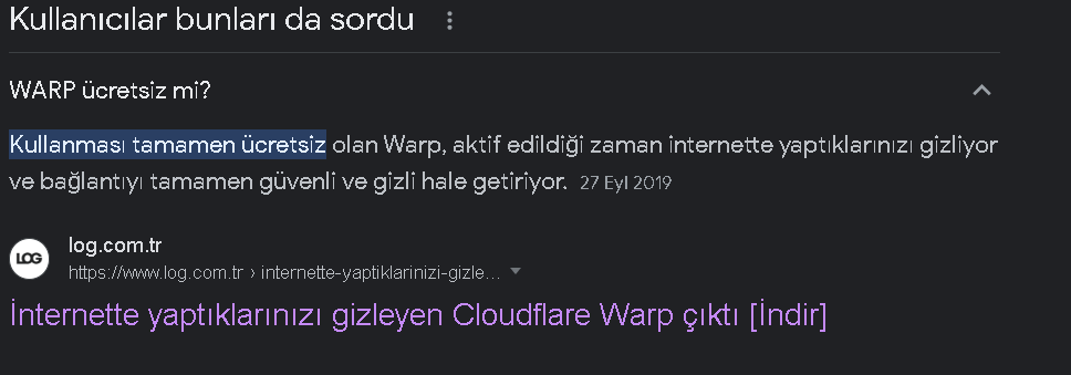 Cloudflare WARP ve WARP+ olarak ikiye ayrılıyor. WARP+ daha hızlı veri akışı gibi imkanlar sağlıyor https://support.cloudflarewarp.com/...ference-between-WARP-WARP-and-WARP-Unlimited-.