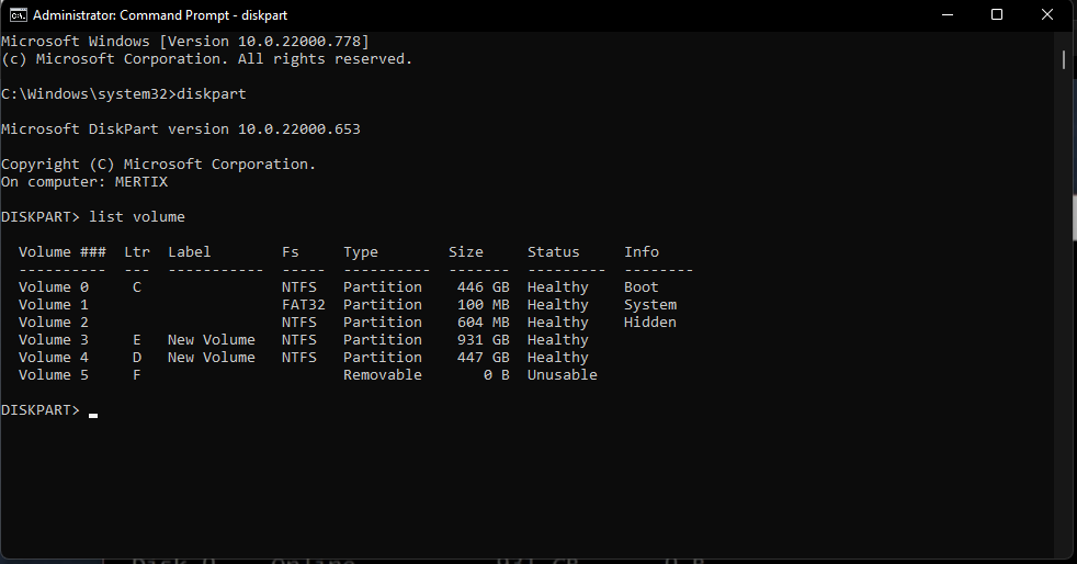 CMD'den disklerde gözükmüyor volume olarak görüyor. Nasıl düzeltebilirim?