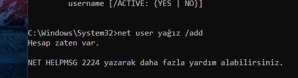CMD'den net user yaptığım zaman fotoğraftaki hatayı veriyor. Nasıl çözerim?